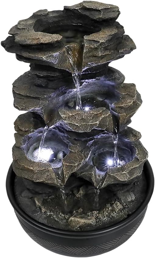 The realistic rock design of the BBabe Indoor Waterfall Fountain giving it a wonderful natural appeal, adds sophistication and interest to your home or office. This tabletop fountain features 4 tier that a gentle stream of water softly flows from top to bottom, creating a soft and relaxing sound that adds tranquility to any space. Built-in LED lighting offers a peaceful, calming glow at night, will not dizzy you. The indoor desktop water fountain will add natural element and tranquility to your living space.