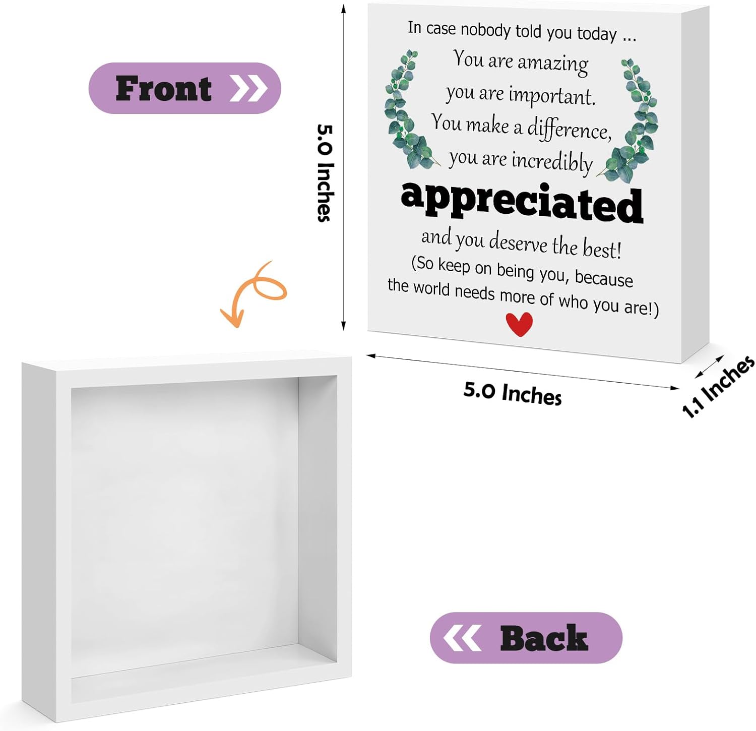 Material&Size: 12.7cm*12.7cm*2.8cm(5inch*5inch*1.1inch),The wooden box sign is made of high quality natural wood with fine workmanship, clear printing, beautiful, sturdy, not easy to deform, break, fade.It is suitable for decoration in different occasions.