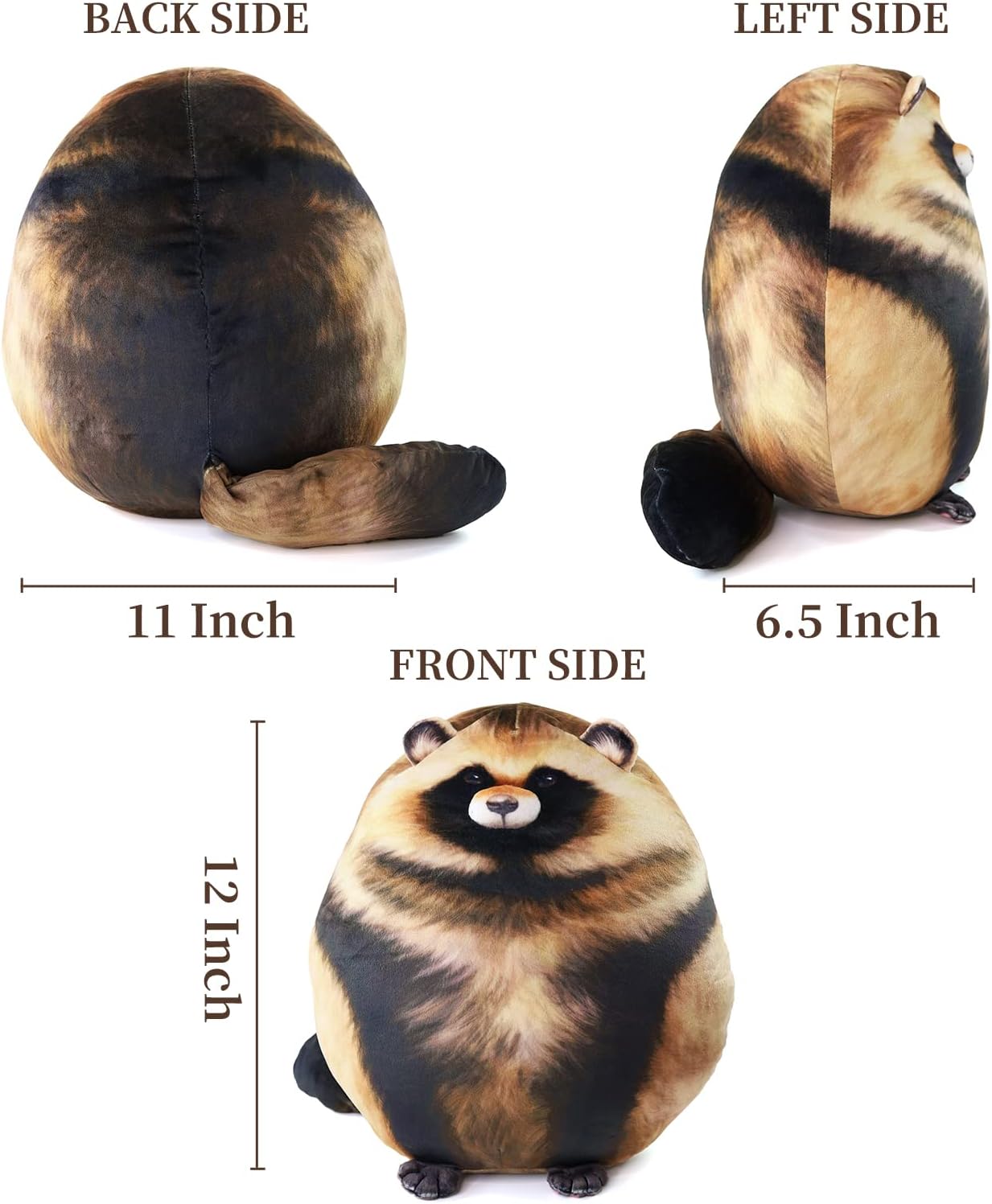 【Attention】 The raccoon pillow comes by vacuum packaging, so it is flat, after you unpacking, please do something make the cotton Loose then it will recover full within 2 days, put the raccoon pillow in the sun or to the dryer, it will recover better.