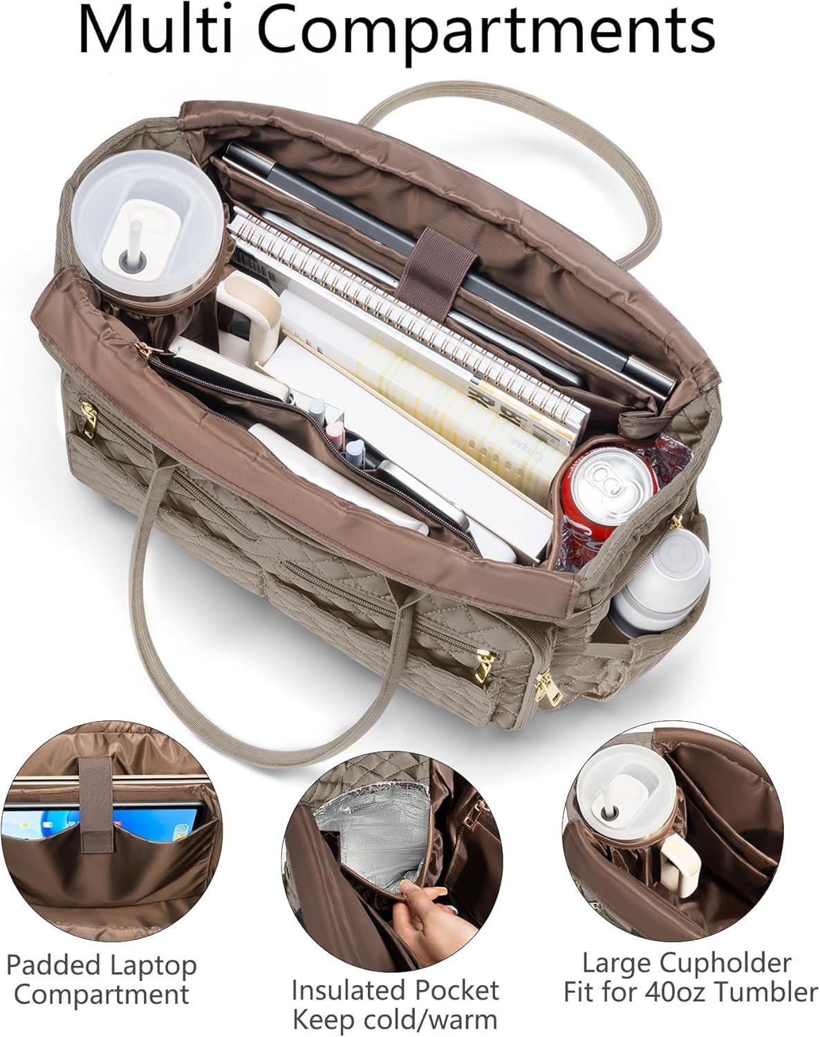 Teacher Bags for Women, 15.6 inch Laptop Work Tote Bag Quilted Nurse Bible Computer Shoulder Bag for School Travel | Dream Tote Work Bag, with 40oz Cup Holder, Insulated Pocket, Zipper & Strap, Office Briefcase, Ideal Gift for Women